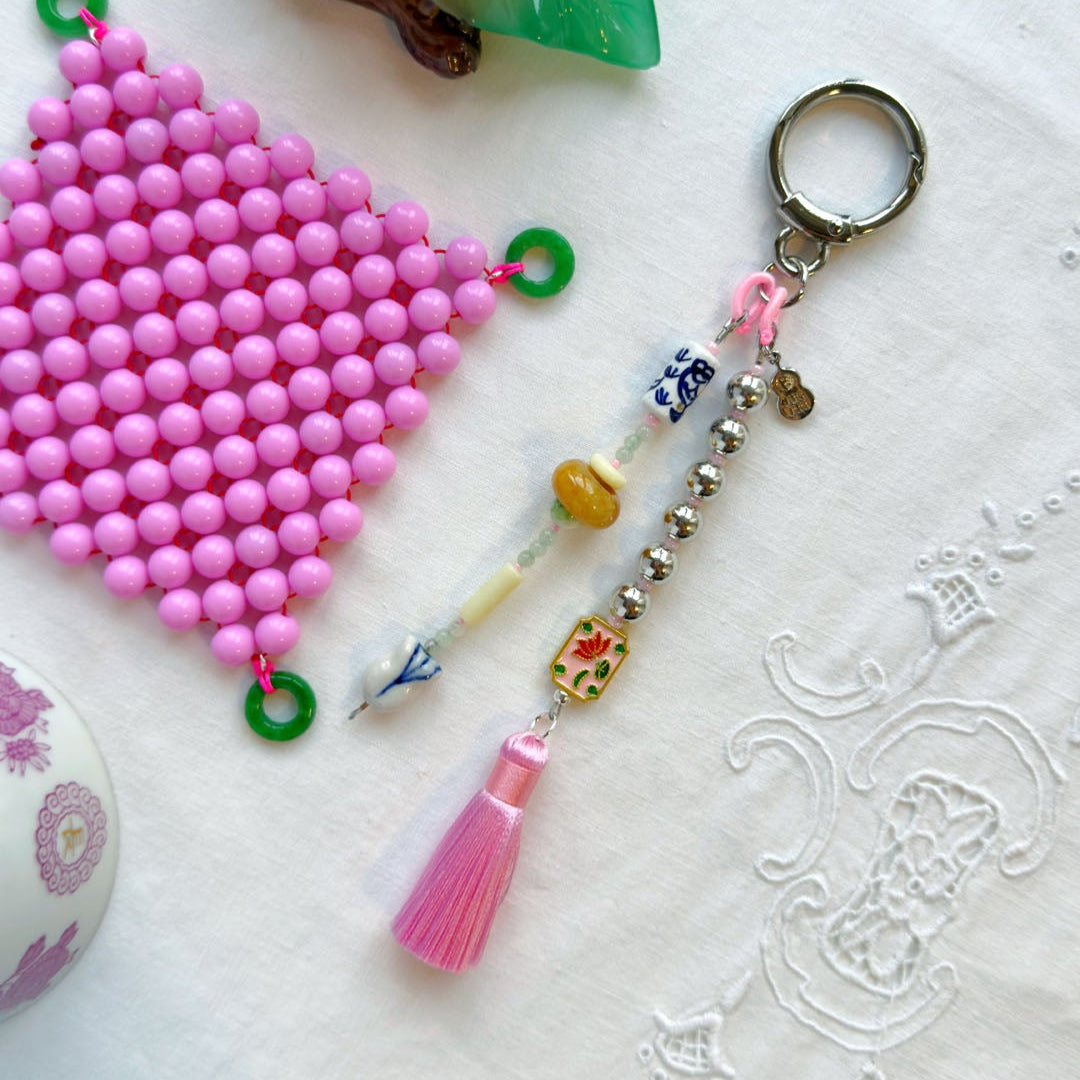 这款迷人的吊坠以流苏、托帕石和精致的青花瓷为特色,致敬九天玄女——爱与激情的女神。无论是挂在您的爱车、钥匙还是牛仔裤上,这款吊坠都能为您的配饰注入浪漫与性感的活力,并增添一抹可爱。