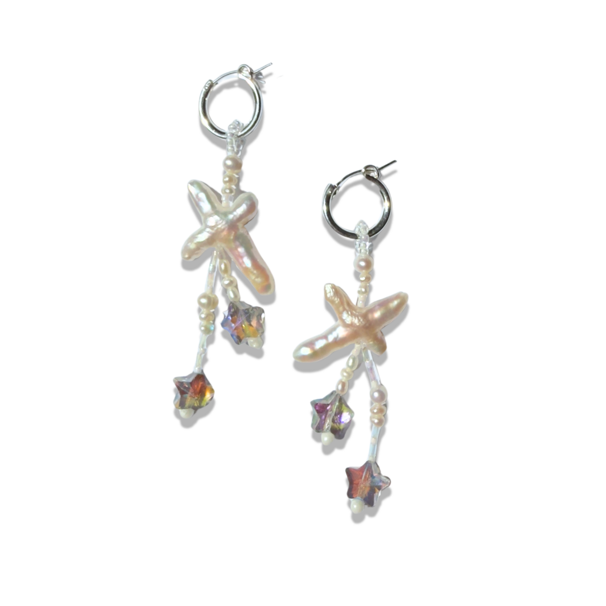 为耳边点亮一颗颗微光小星星,玻璃材质在光线中闪烁,如同坠入糖果梦境的小流星。与星糖雨颈链相呼应,一起守护你心中的小愿望♡︎